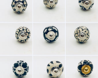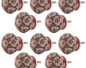 20 X Mobelknopfe Keramik Rot Weiss Mix Handbemalt Knaufe Griffe Etsy