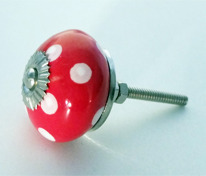 Mobelknopf Weiss Mit Roten Punkten Als Schubladenknauf